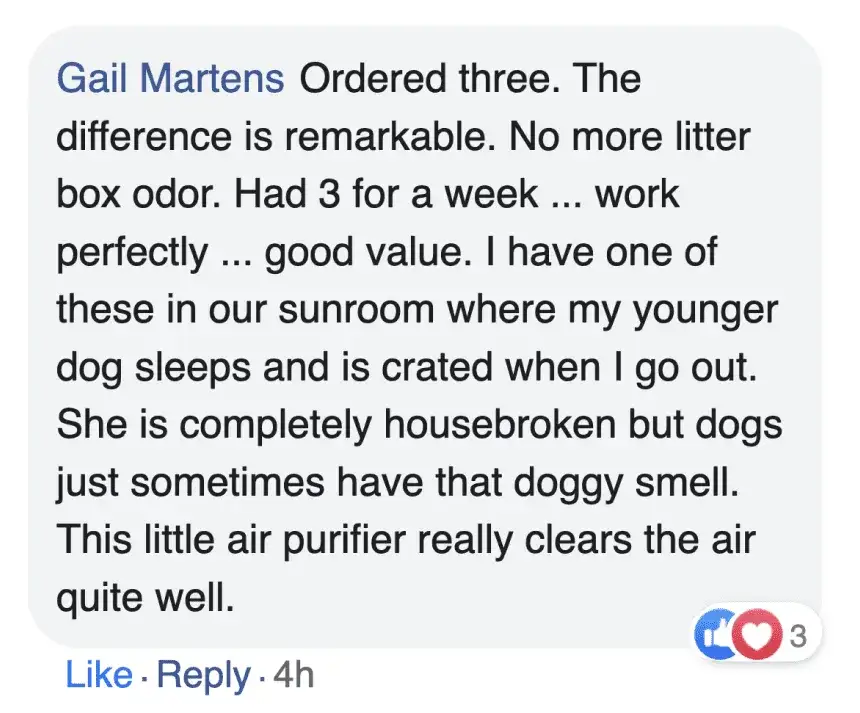 I never thought I could have a home that doesn’t smell like dog. This purifier is a game changer!
