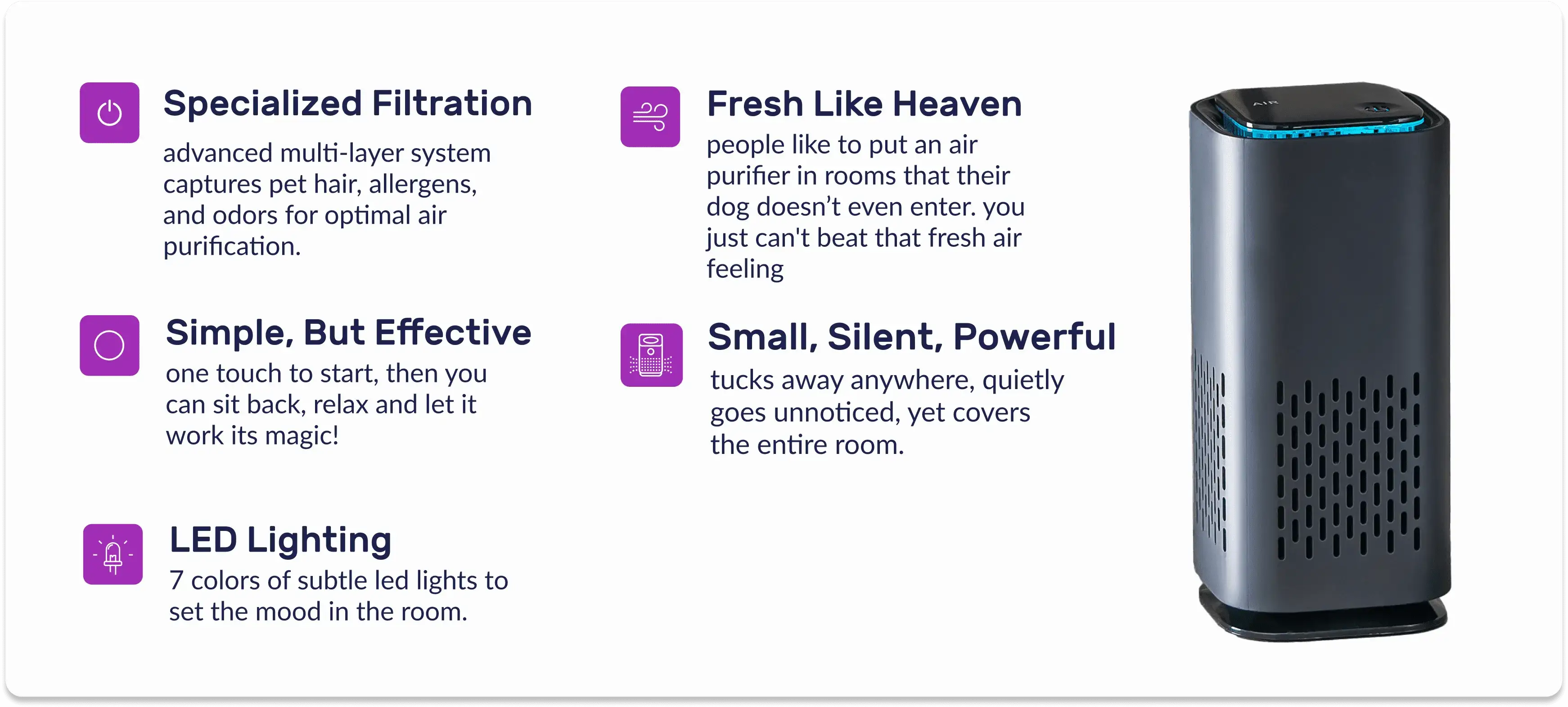 → The Puppy Mothers Pet Air Purifier was crafted for pet owners like you, who want a home that smells good & feels good.