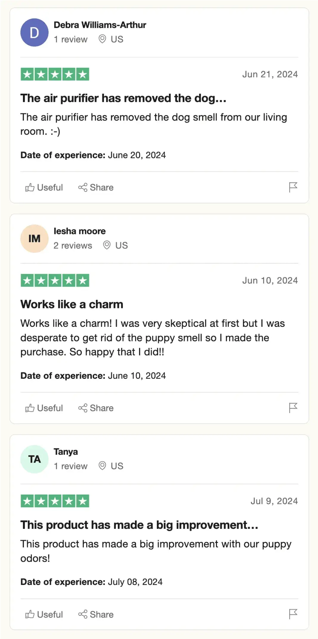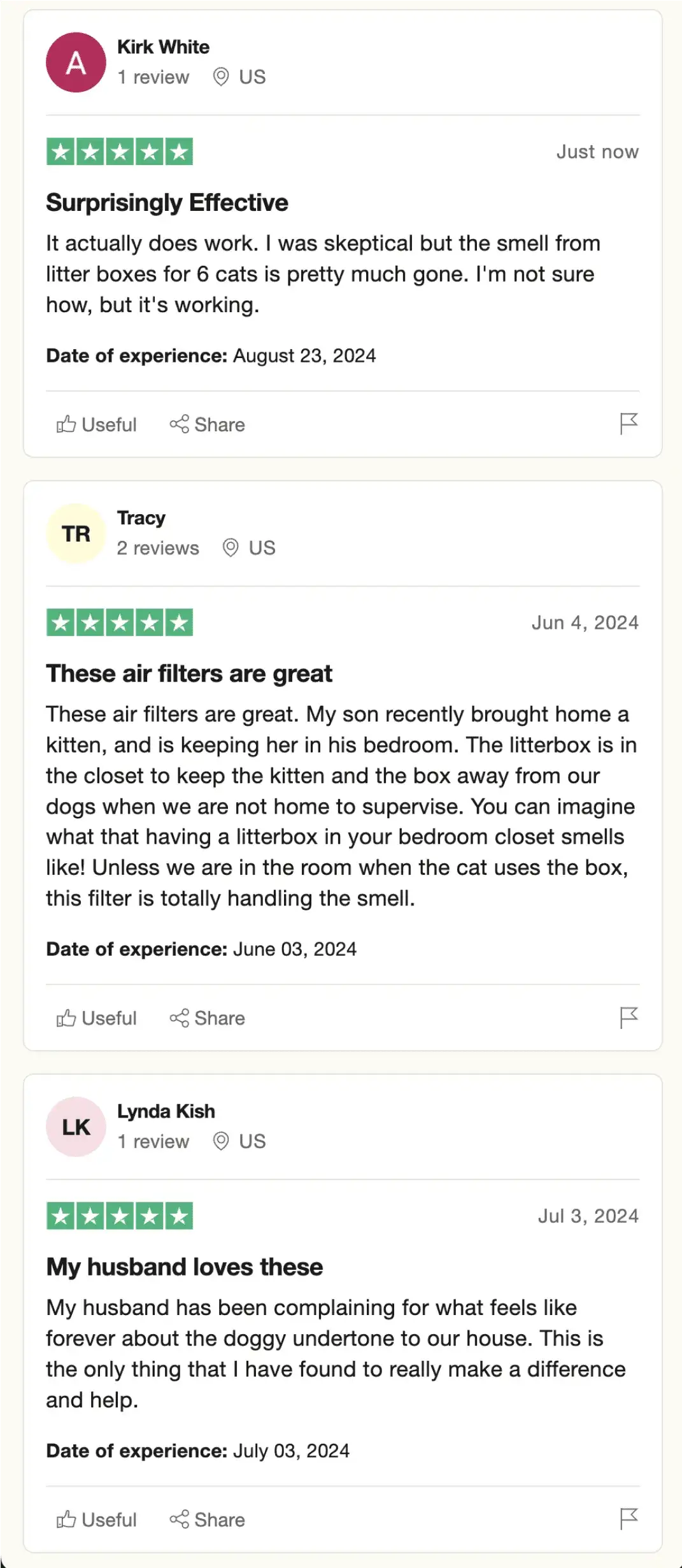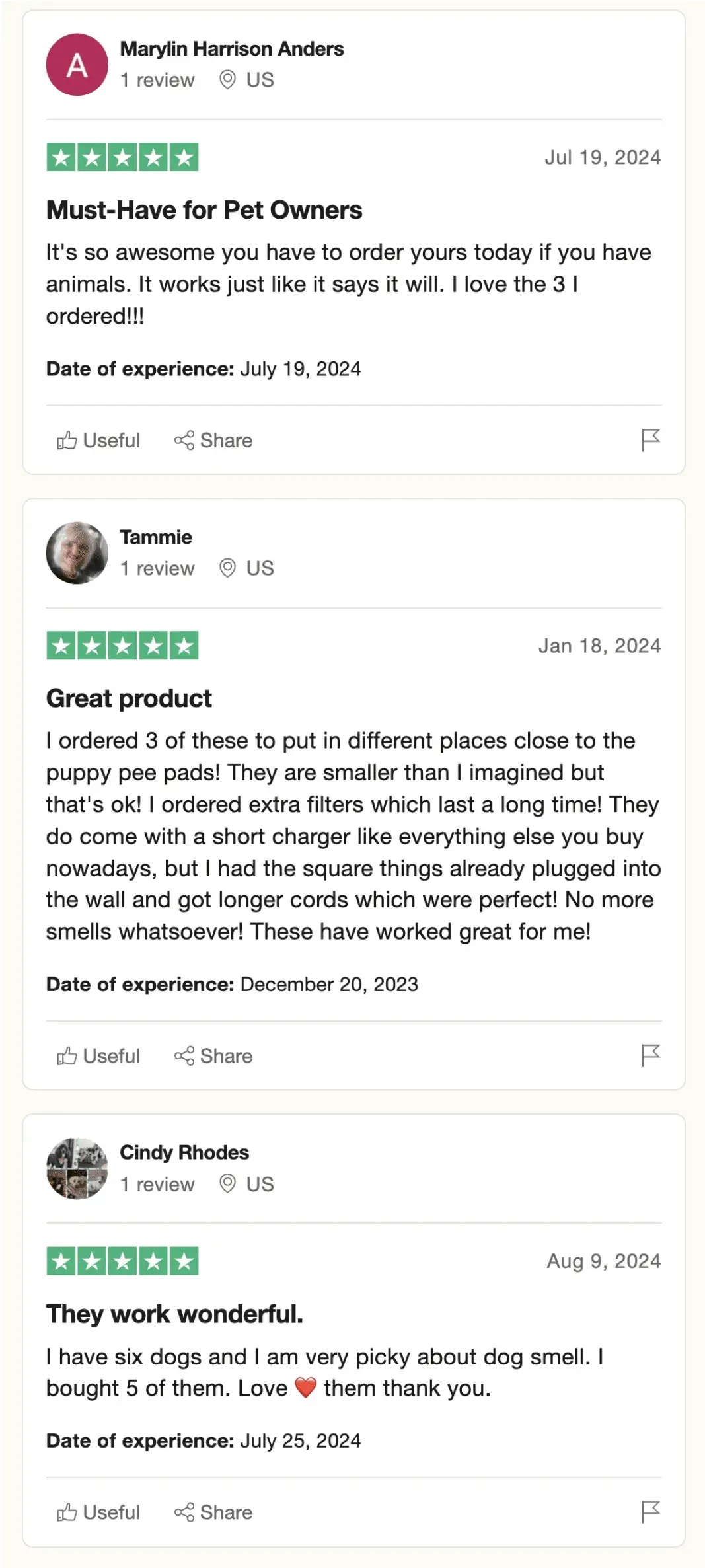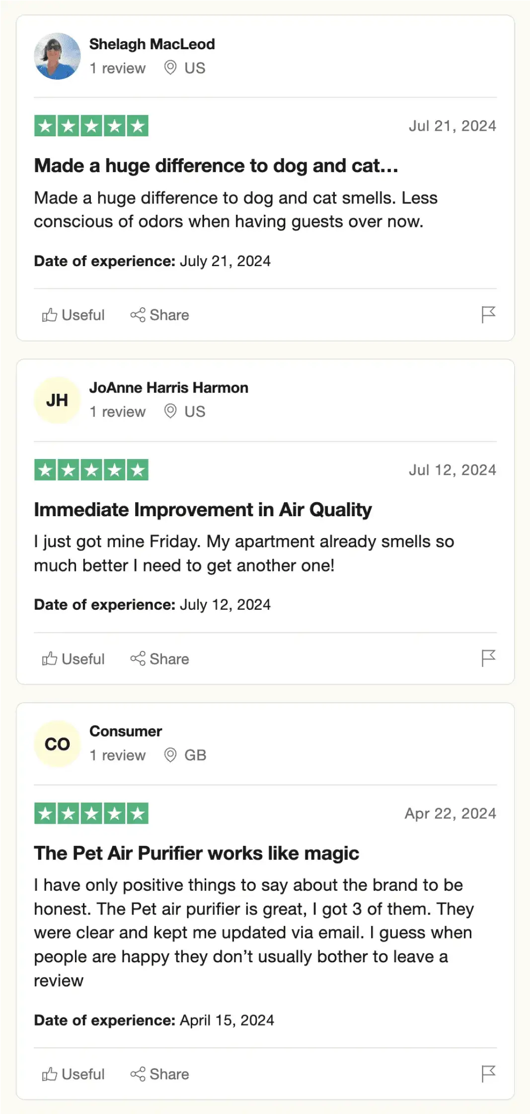 Our customers love sharing how the Pet Air Purifier has transformed their homes. Here are some of their stories: